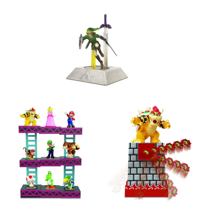 PDP has three new amiibo displays in the works, according to Amazon listings. “Master Sword Stylus Display”, “Spinning Fire Bar Display”, and “Donkey Kong Display” should be out sometime this year. The first two are priced at $14.99 while the other one will cost $19.99.