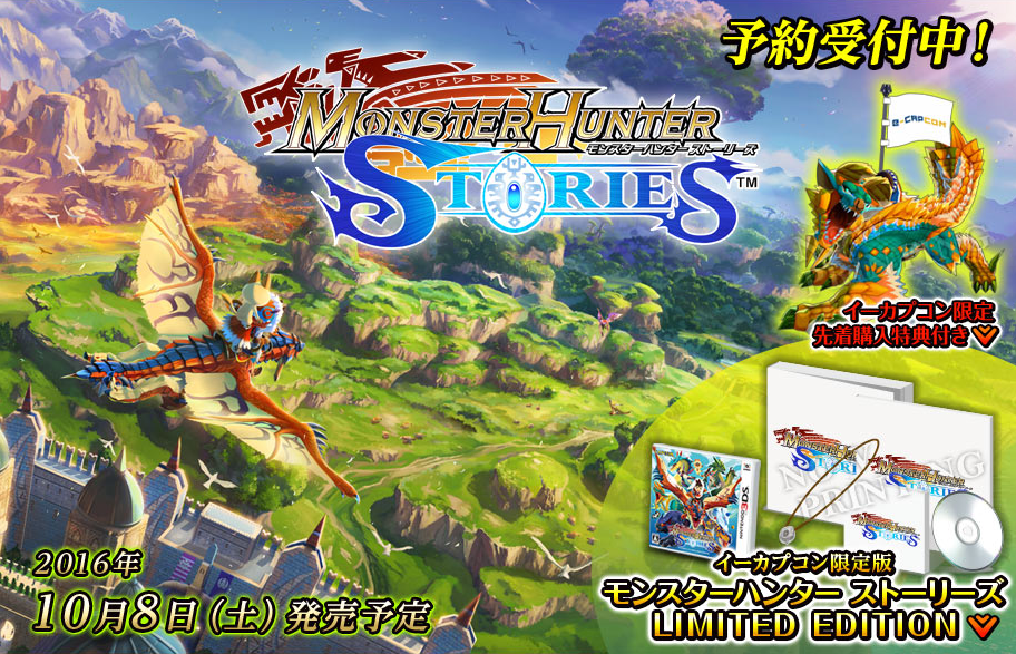 The eCapcom store is now taking pre-orders for a limited edition version of Monster Hunter Stories. It’ll include a copy of the game, 24-page book featuring art, developer messages, and other items, a soundtrack selection CD, a Kizuna Stone necklace, and special box.
