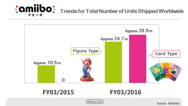 Next, we will cover the amiibo business. Over the fiscal year ended March 2016, we shipped about 24.7 million amiibo figures and about 28.9 million amiibo cards, a huge increase over the prior fiscal year.