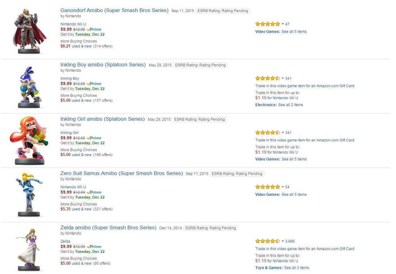 Amazon is selling five amiibo or $10 each. Along with Zero Suit Samus which we mentioned a couple of days ago, you can also grab Ganondorf, Inkling Boy, Inkling Girl, and Zelda for the same price.