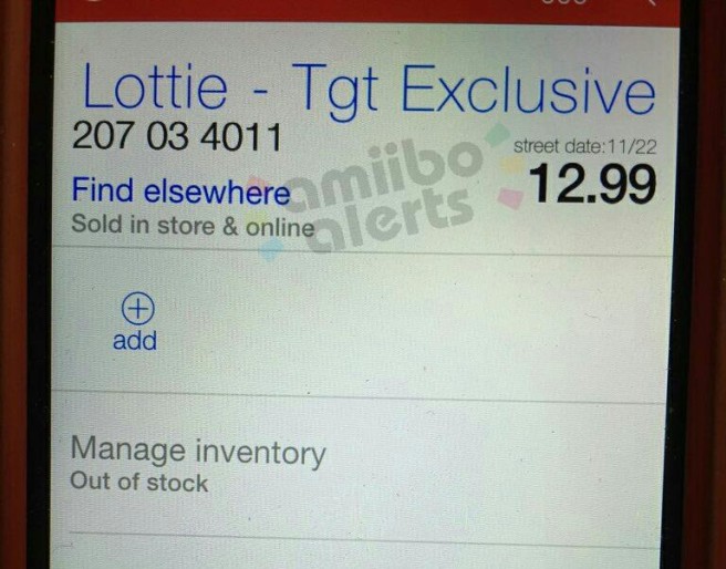 In the United States, the upcoming Lottie amiibo was rumored to be a Target exclusive. We now have confirmation about this. As shown in the stock checker image above, Lottie will only be sold at Target stores.