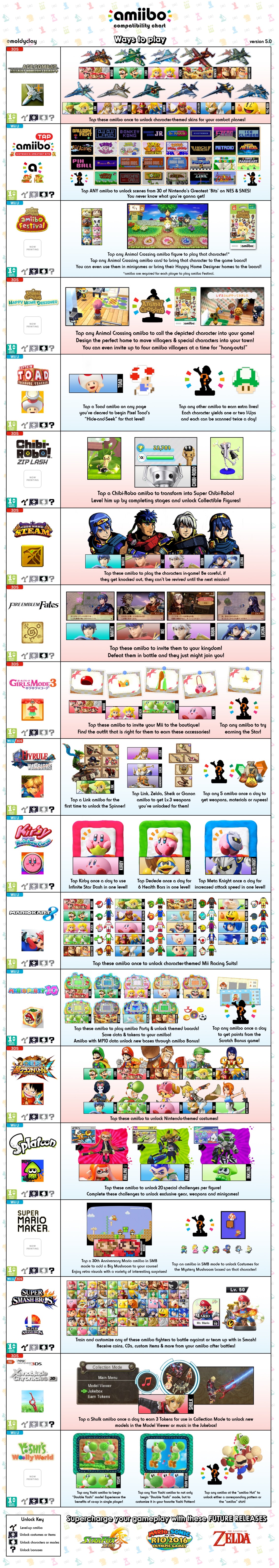 moldclay has updated his fan-made amiibo compatibility chart once again. In this latest version, it’s been brought up to version 5.0. Check it out above.