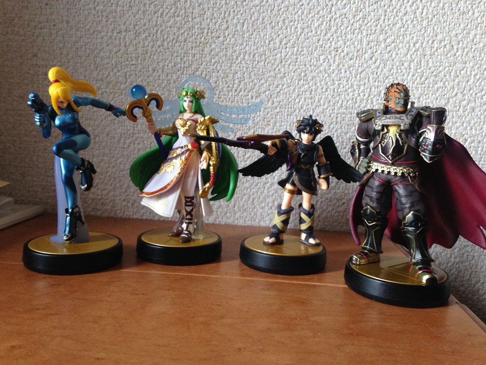 Photos of the Zero Suit Samus, Palutena, Dark Pit, and Ganondorf amiibo