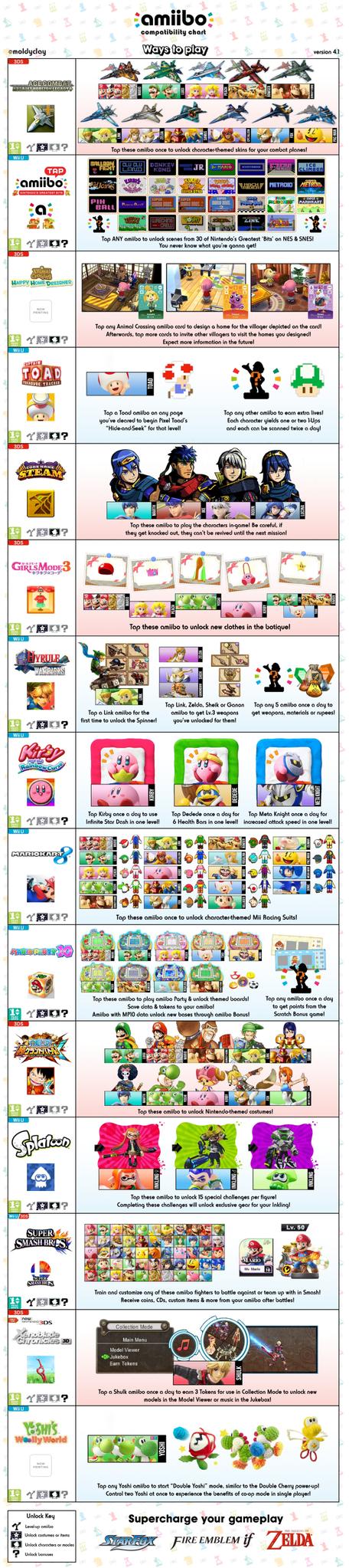 Nintendo fan “moldyclay” has once again updated his amiibo chart. All of the latest figures are represented in the graphic, so be sure to take a look at it if you’d like to know which games an amiibo is compatible with!