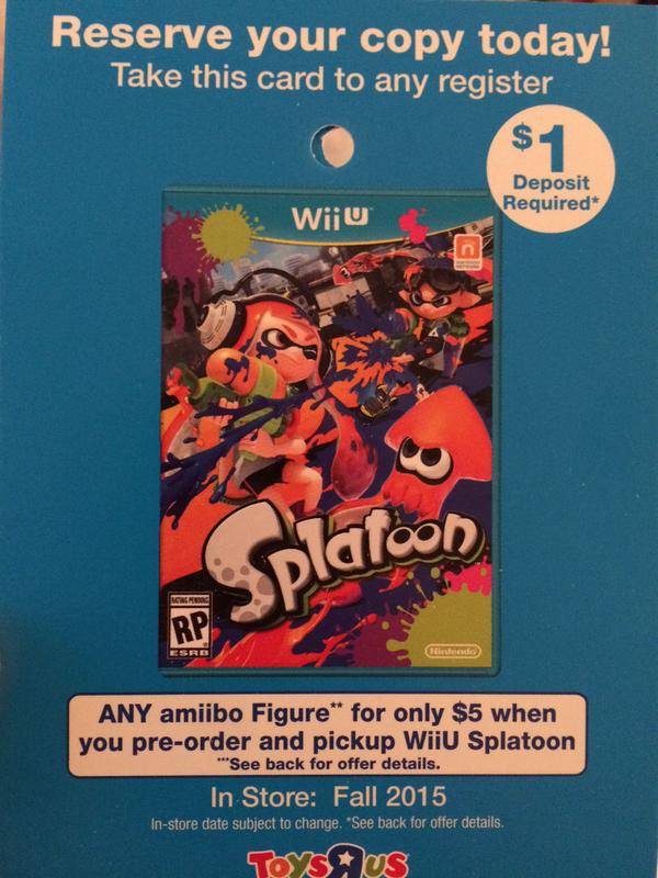 Reserve Splatoon at Toys “R” Us, get an amiibo for $5