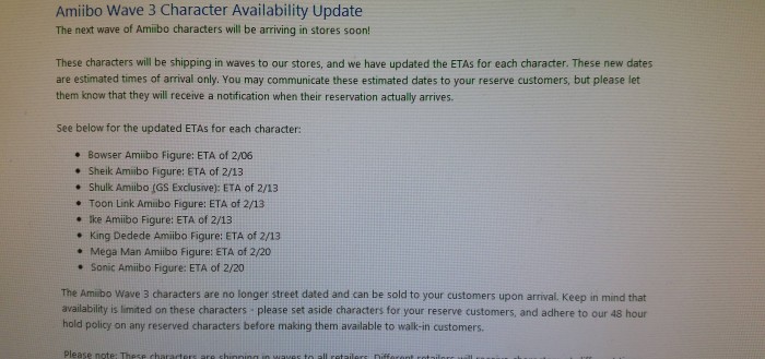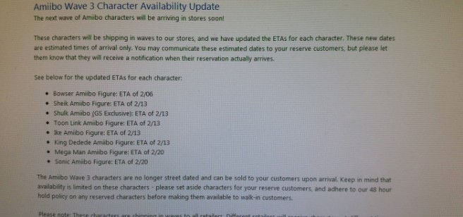 GameStop memo says latest amiibo will be distributed in waves