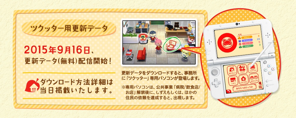 Animal Crossing: Happy Home Designer will be receiving its planned update next week, Nintendo has announced. Players in Japan can download the upgrade starting on September 16.