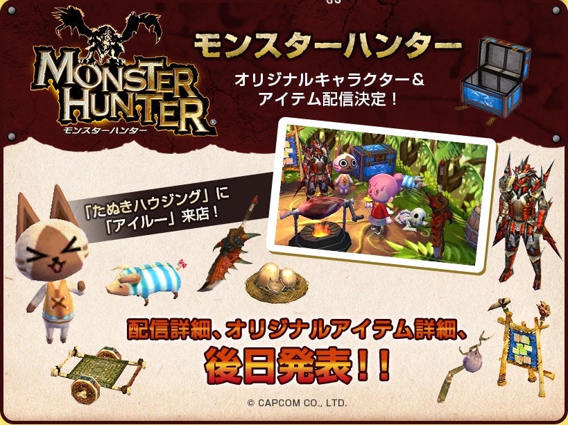 Nintendo is planning two collaborations for Animal Crossing: Happy Home Designer. In Japan, players will be able to participate in opportunities from Monster Hunter and 7-Eleven.