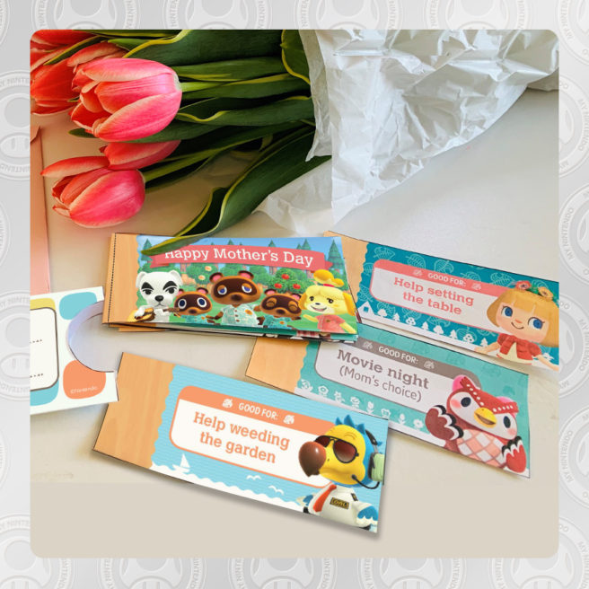 My Nintendo has updated with a couple of new rewards. A pair of printable items are available, both of which are based on Animal Crossing: New Horizons rewards. You can pick up some Mother’s Day Coupons as well as gift tags.