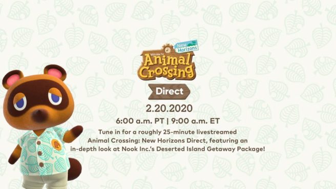 Nintendo will host a new Animal Crossing Direct on February 20, the company has announced. It will feature roughly 25 minutes of information about Animal Crossing: New Horizons.