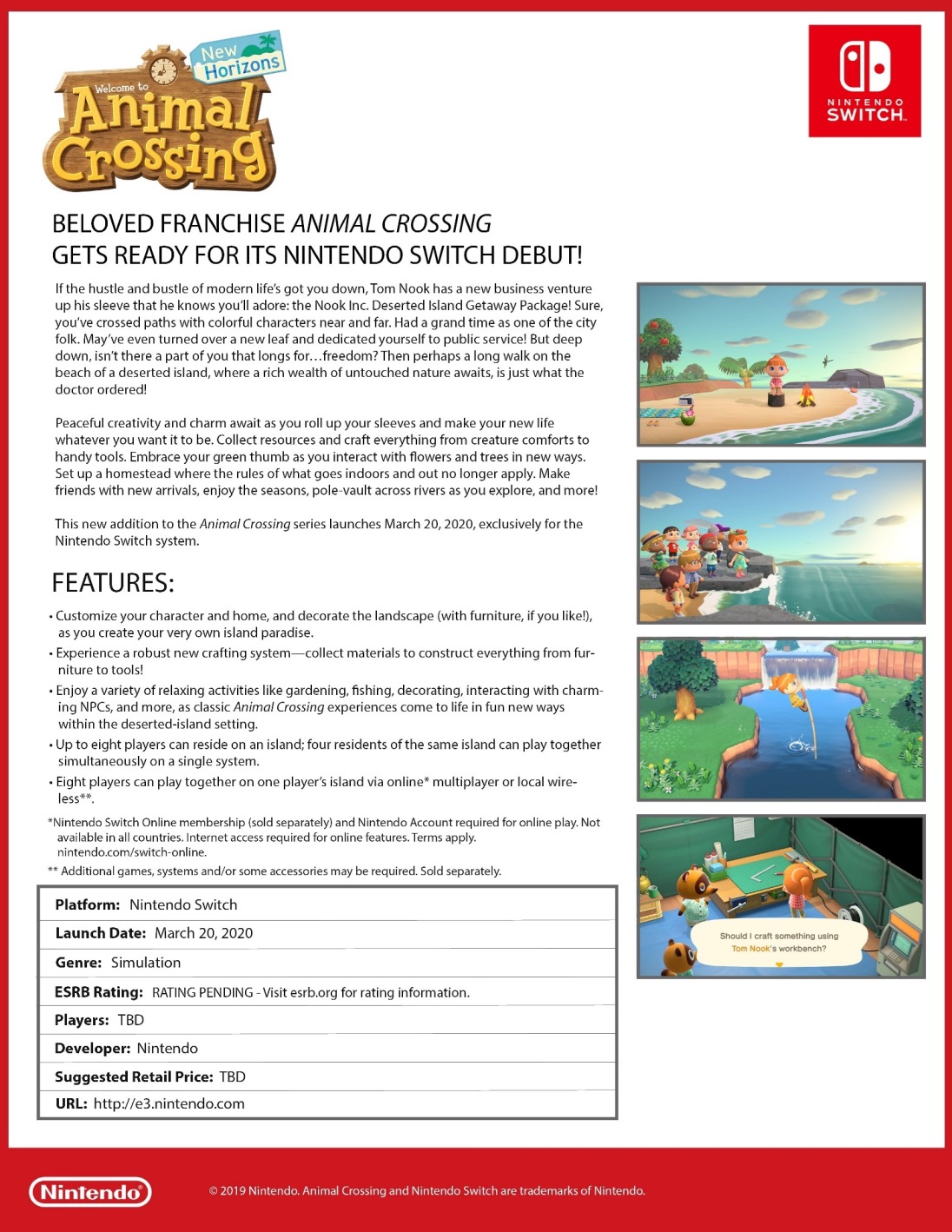 Animal Crossing: New Horizons launches for Switch on March 20, 2020. The game had originally been planned for release this year.