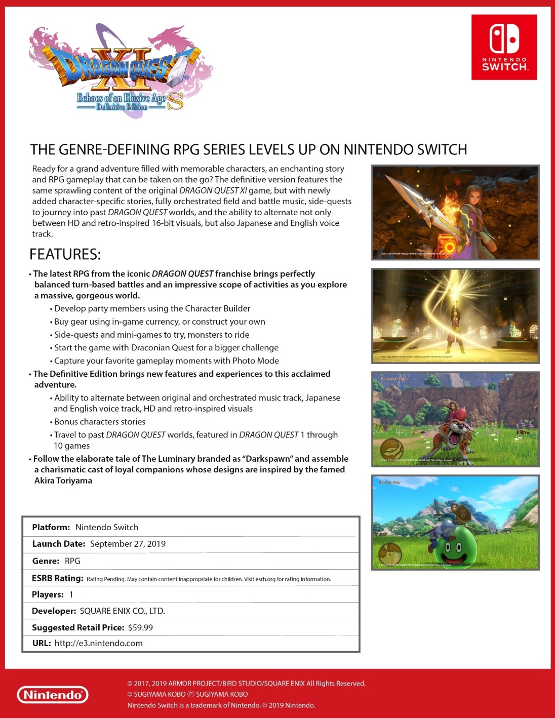 Animal Crossing: New Horizons launches for Switch on March 20, 2020. Dragon Quest XI S and Zelda: Link’s Awakening will be out this year on September 27 and September 20 respectively.