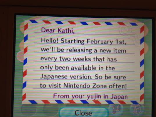 In the past, Nintendo has released plenty of free items for Animal Crossing: New Leaf in Japan. This DLC will now be released in North America. A message posted in New Leaf confirms that a new item will be available through Nintendo Zones every two weeks starting February 1.