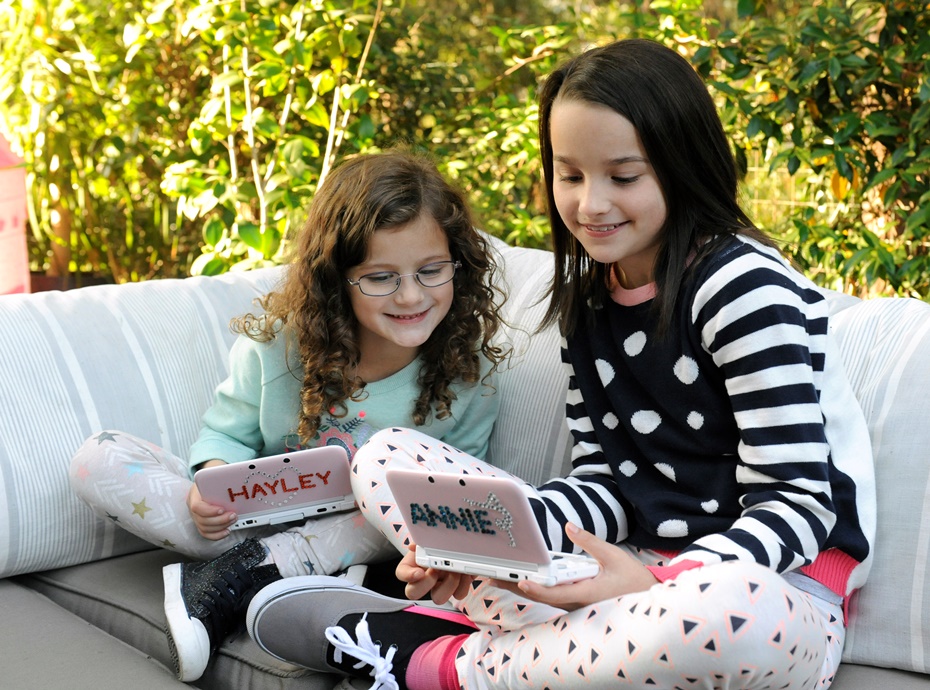 In this photo provided by Nintendo of America and released November 24, 2014, YouTube sensations and sisters Annie and Hayley Bratayley play Tomodachi Life on Nintendo 3DS XL while filming a promotion for the game, November 12, 2014 in Los Angeles. In the Tomodachi Life game, available exclusively for the Nintendo 3DS family of systems, players can make Mii characters of their friends and family members and see what exciting things happen. Players will watch their Mii characters’ lives unfold in silly, spontaneous and hilariously dramatic ways. (Photo by Nintendo/Bob Riha Jr.)