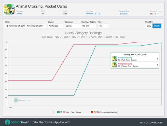 Apple hasn’t offered any information regarding the number of downloads for Animal Crossing: Pocket Camp on iOS. However, it would be very surprising if it hasn’t matched or surpassed its Android equivalent.