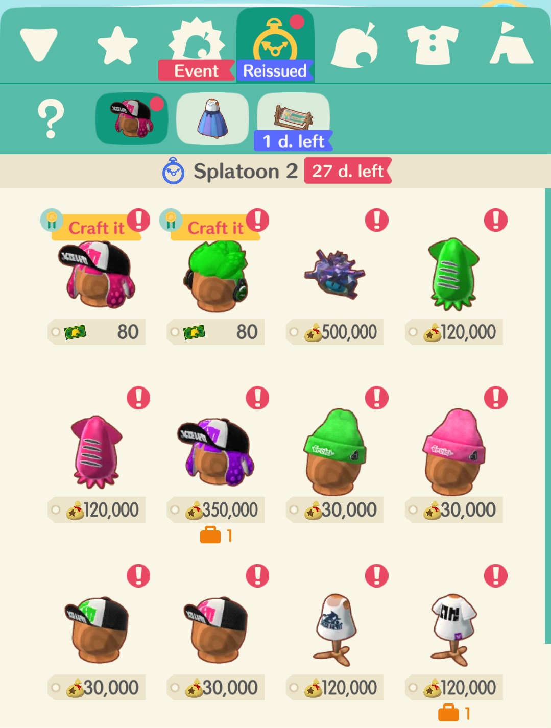Animal Crossing: Pocket Camp – Splatoon 2 item Reissue Crafting