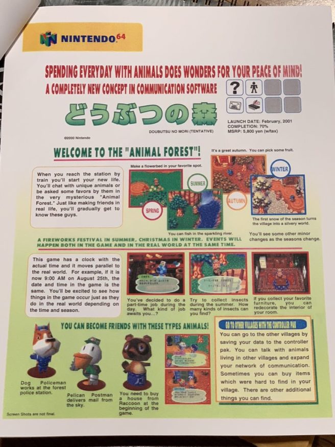 Animal Crossing is one of Nintendo’s tentpole franchises today, but it all started with the original Animal Crossing on Nintendo 64. The game never ended up being released outside Japan, but it seems like at least an English localization was planned at some point. John Ricciardi of localization studio 8-4 shared the first ever English press material for Animal Crossing today, which you can see above.