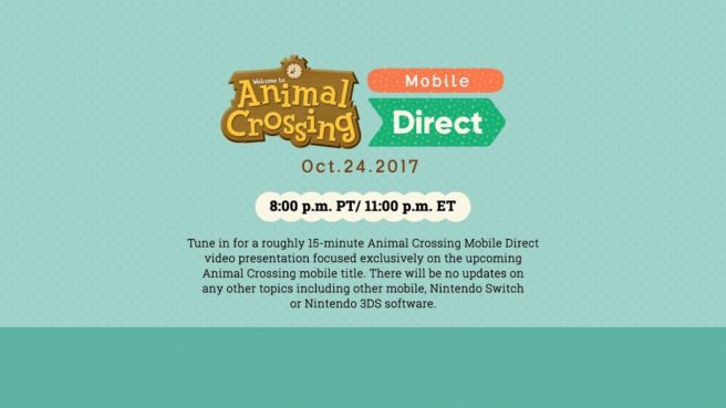 Today’s Animal Crossing Mobile Direct will beginning not too far from now. Nintendo’s presentation is set to begin at 8 PM PT / 11 PM PT / 4 AM in the UK / 5 AM in Europe. It should last about 15 minutes.