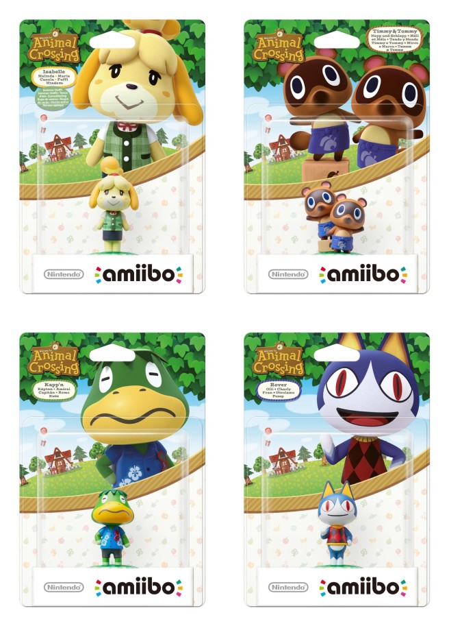 Isabelle, Tommy and Timmy, Kapp’n, Rover amiibo packaging