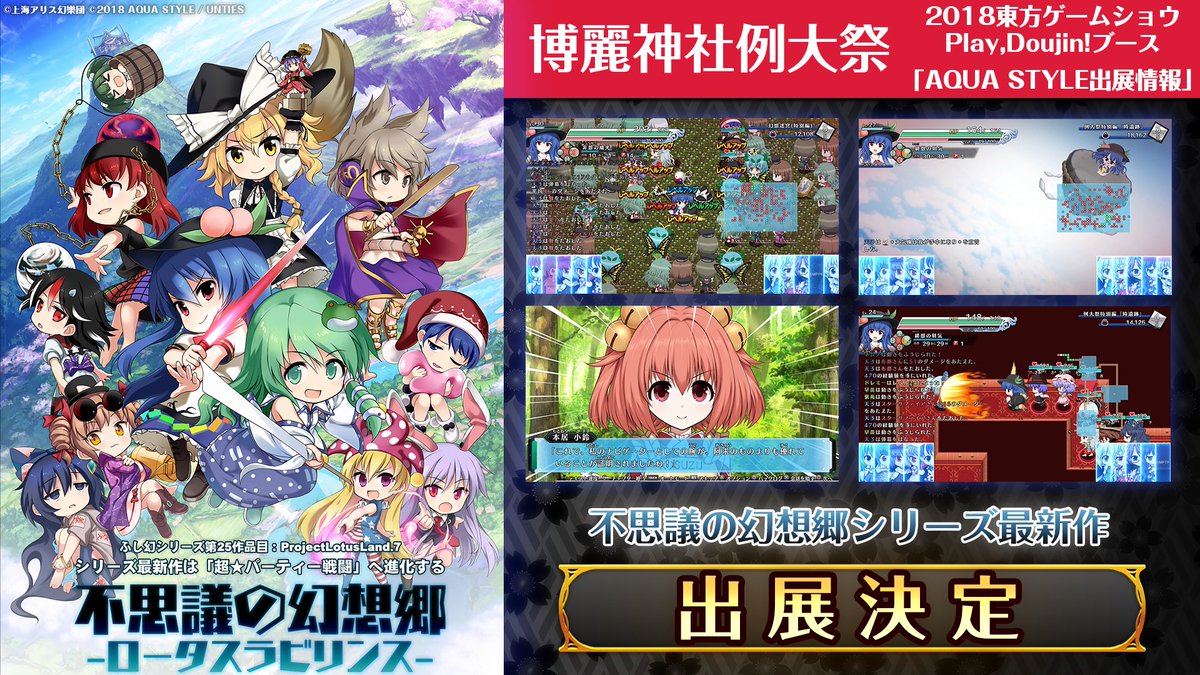 Developer Aqua Style has confirmed that their next Touhou project – Touhou Genso Wanderer: Lotus Labyrinth – will launch for Switch on July 18th in Japan.