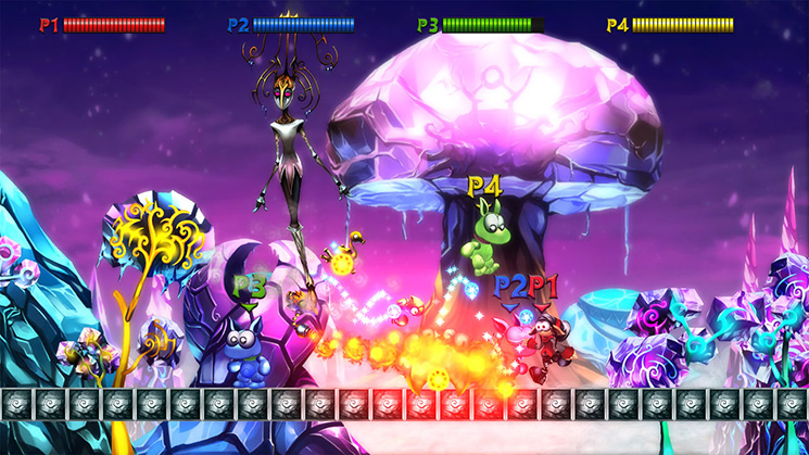 “An all-new adventure in the world of Mecho Wars! Run and shoot through chaotic platforming levels filled with spikes, bottomless pits and an army of deadly robots. Go it alone or team up with your friends in 4-player local multiplayer. Directed by Luc Bernard.”