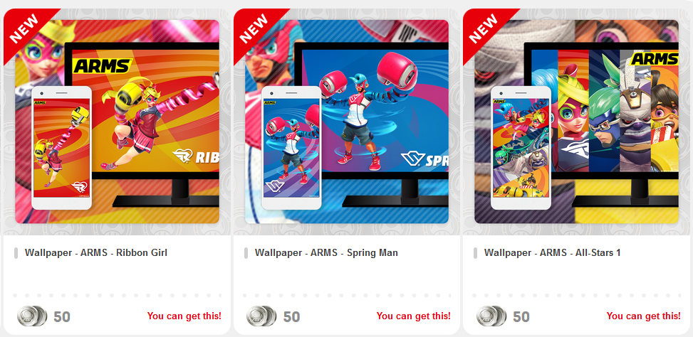 New rewards have been added to My Nintendo in Europe – specifically, four new PC & smartphone wallpapers featuring the fighters from ARMS. They cost 50 Platinum Points each and can be obtained here.