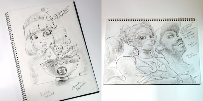 Mr. Ishikawa, Art Director for #ARMS, was so inspired by the Open Invitational that he drew our champion, @B33ZERK, and Producer Mr. Yabuki! pic.twitter.com/cRNGfvdzG5