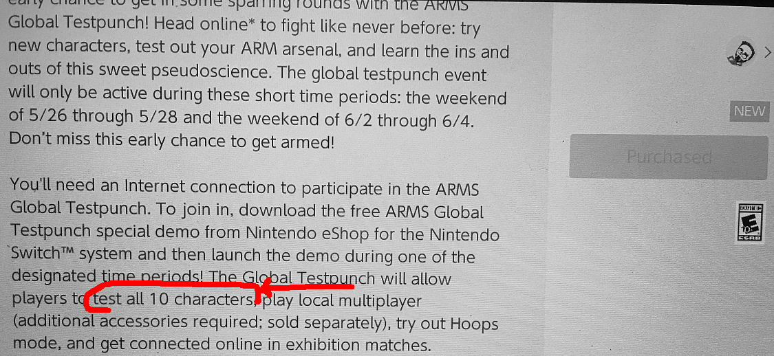 We should note that this eShop listing isn’t official confirmation. We’ll try to get a response from Nintendo, but we should have a definitive answer soon as ARMS Global Testpunch begins in less than a week.