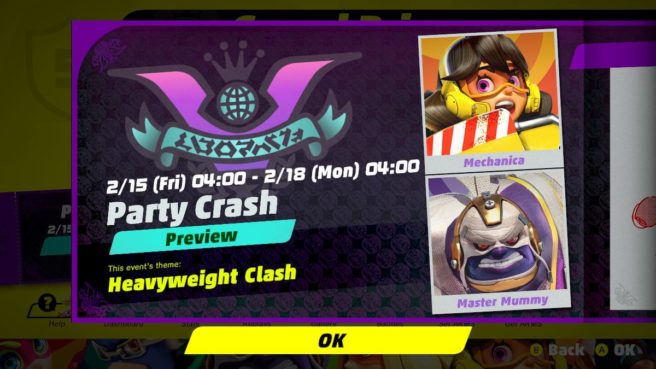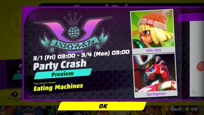 Nintendo is gearing up for the next ARMS Party Crash Bash. For those who missed it, the event is being held to determine the game’s best character.
