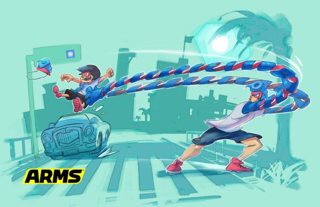 Nintendo’s Japanese ARMS Twitter page is back at it again with another couple of updates. The first one is a new piece of art showing Ninjara vs. Spring Man, pictured above. That theme continues below showing a match between the two.