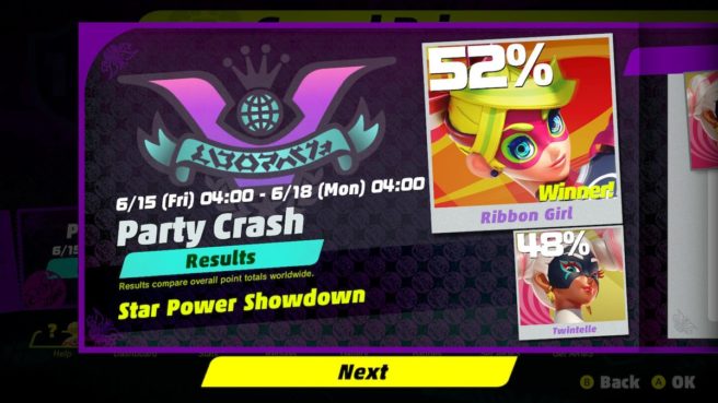 Another ARMS Party Crash is in the books. In the latest event, Ribbon Girl and Twintelle battled it out under the “Star Power Showdown” theme.