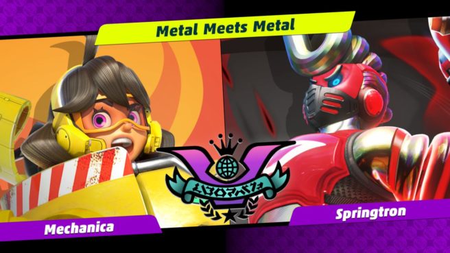 Nintendo has announced the next Party Crash for ARMS. This weekend, Mechanica and Springtron will be featured in the latest event. The theme is called “Metal Meets Metal”.