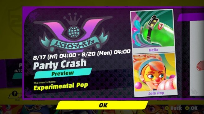Nintendo has announced the next Party Crash for ARMS. Next weekend, Helix and Lola Pop will be featured in the latest event. The theme is called “Experimental Pop”.