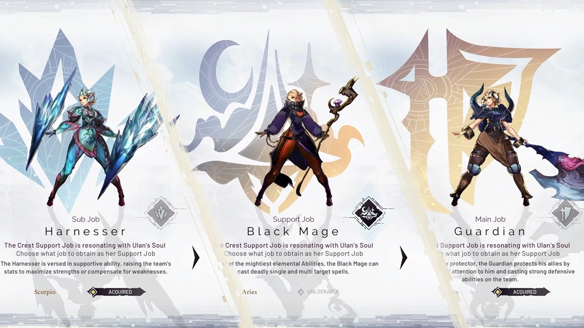 Astria Ascending has a unique job system, which will allow each hero to flex their individual skills. Characters can have a base job, main job, sub job, and support job. Additionally, jobs in Astria Ascending are tied to a zodiac sign and an element: Libra, Gemini, Aries, Cancer, Scorpio, Taurus, Pisces, Sagittarius, Aquarius, Capricorn, Leo, and Virgo. The Demi-Gods will also progress through an ascension tree to gain power. You can unlock nodes that boost your stats and more.