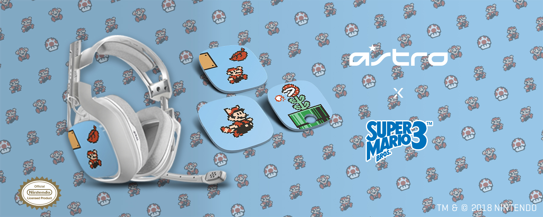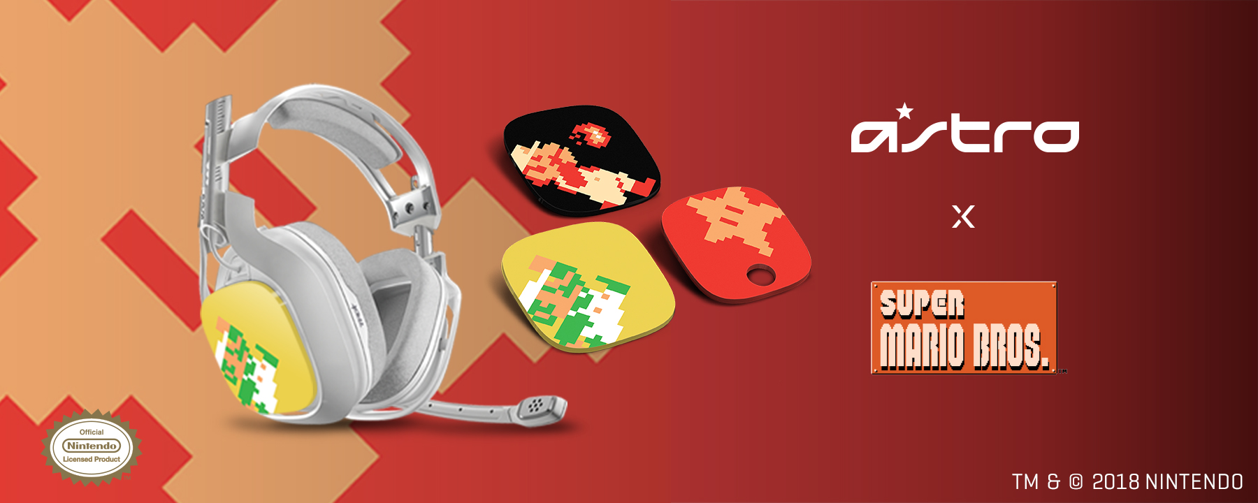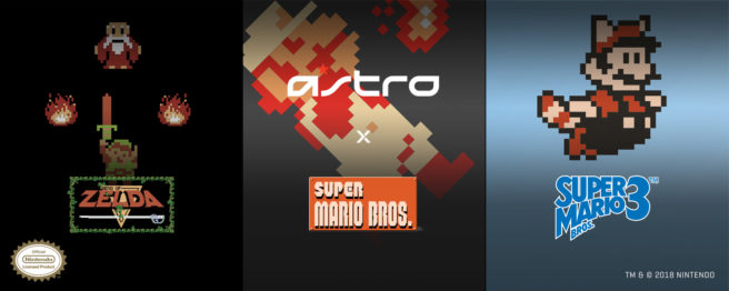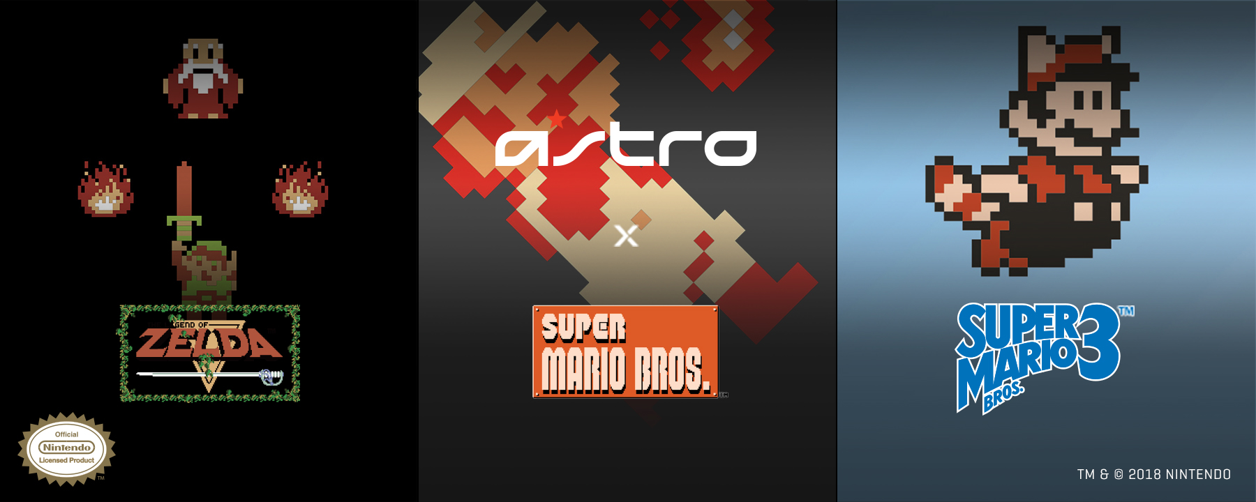 First up from Astro Gaming, three exclusive speaker tags for A40 Headsets are in the works, featuring retro-classic takes on The Legend of Zelda, Super Mario Bros. and Super Mario Bros. 3. These were developed alongside Nintendo and have official artwork.