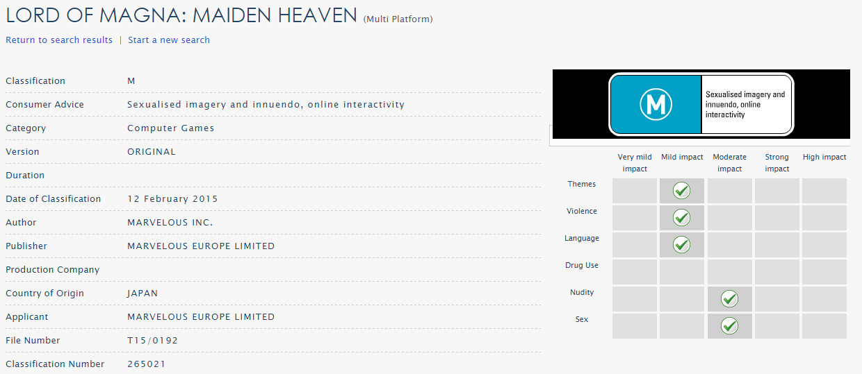 XSEED Games announced Lord of Magna: Maiden Heaven for North America last week. No such confirmation is out there for Europe and Australia yet, but you can rest easy knowing that the game will be available in these regions as well. Lord of Magna: Maiden Heaven has been rated in Australia, meaning it’s just a matter of time before an official announcement is made. Marvelous will be publishing directly – much like Senran Kagura Burst.