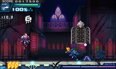 Tenjian takes over a giant hotel and engulfs an entire city with ice. Gunvolt and Copen each infiltrate the hotel in order to save the city. Despite having the same enemy, the two are also in conflict against each other, so they might inevitably clash here.