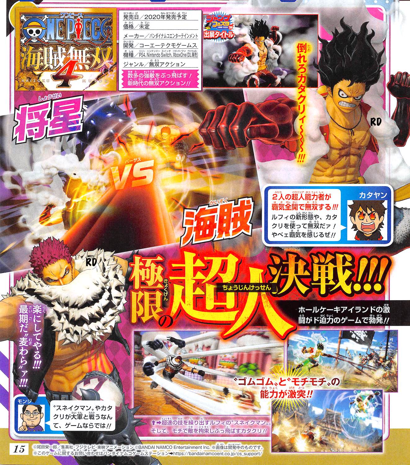 According to the latest issue of Weekly Jump, Charlotte Katakuri is playable in One Piece: Pirate Warriors 4. A scan from the magazine can be found above.