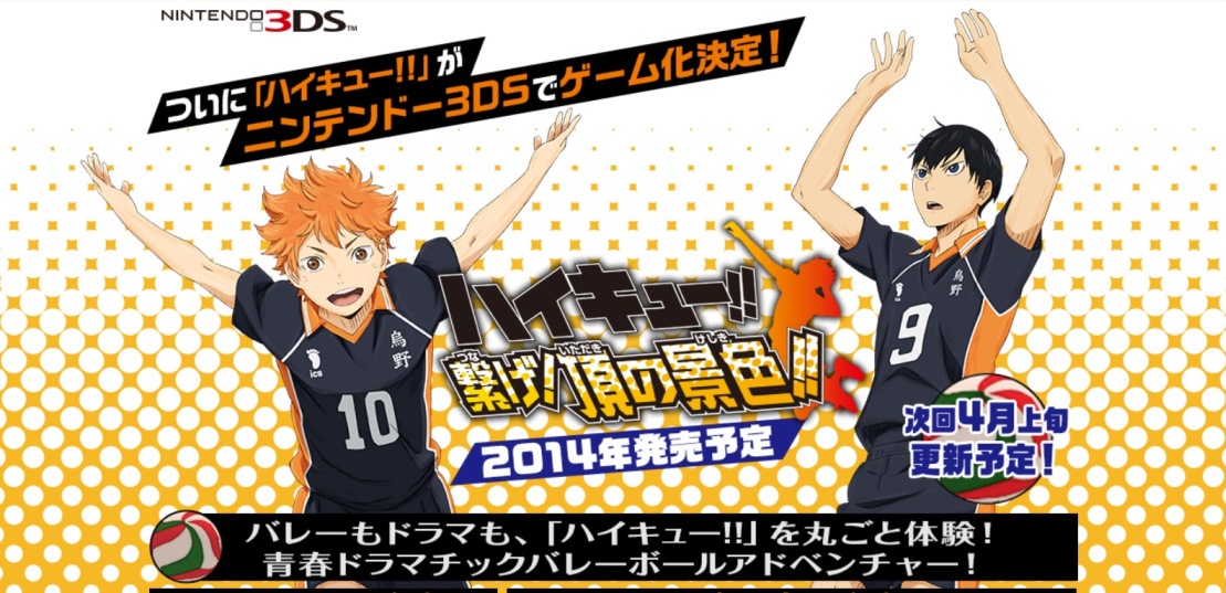 Bandai Namco has opened an official teaser site for the recently-announced 3DS game “Haikyuu!! Tsunage! Itadaki no Keshiki!!”. You can find it here. The site is mostly bare bones at present, but there are a few small screenshots to check out.