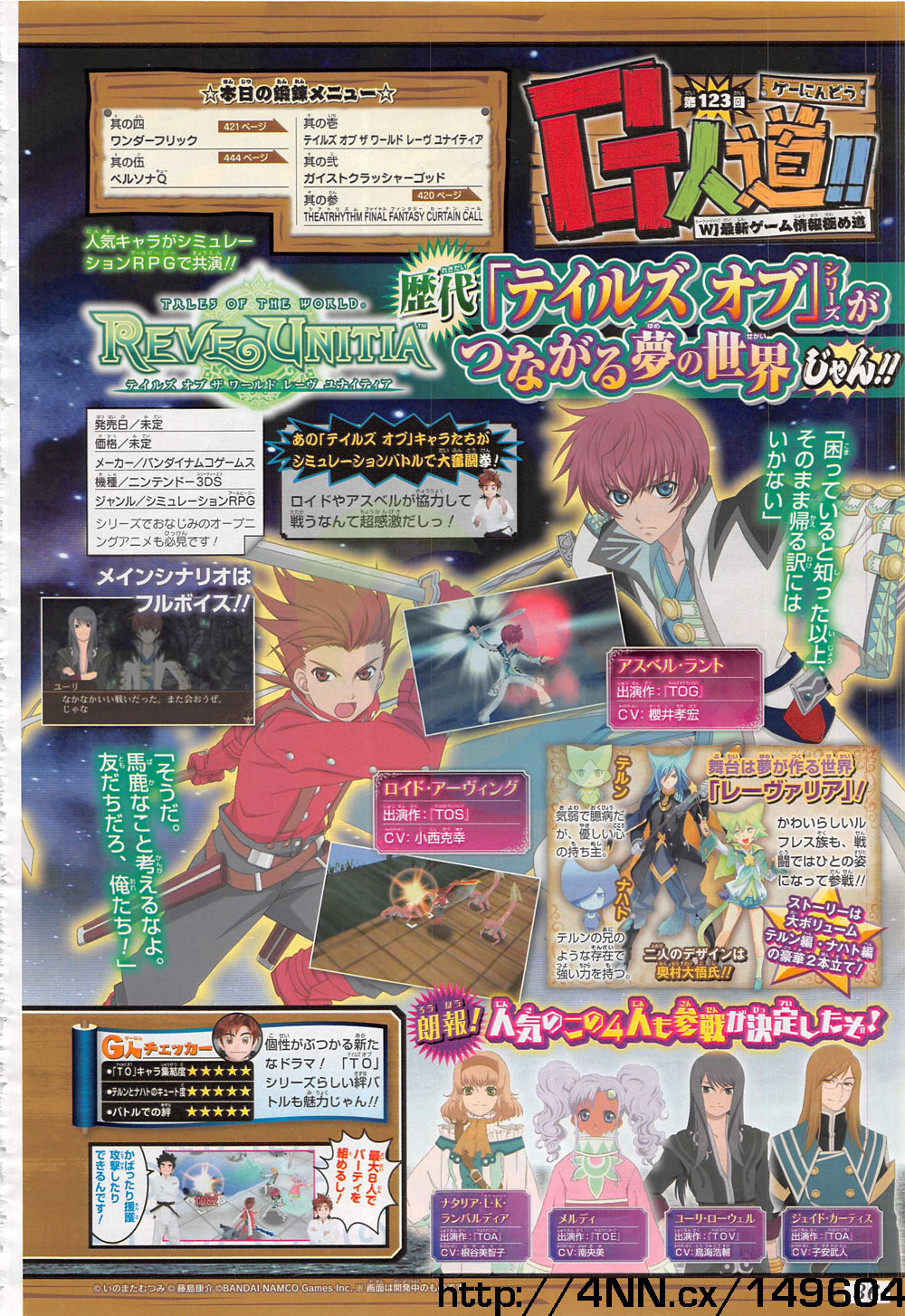 Bandai Namco is finally bringing the Tales series back to 3DS. “Tales of the World: Reve Unitia” is in development for Nintendo’s portable, Jump reveals this week.