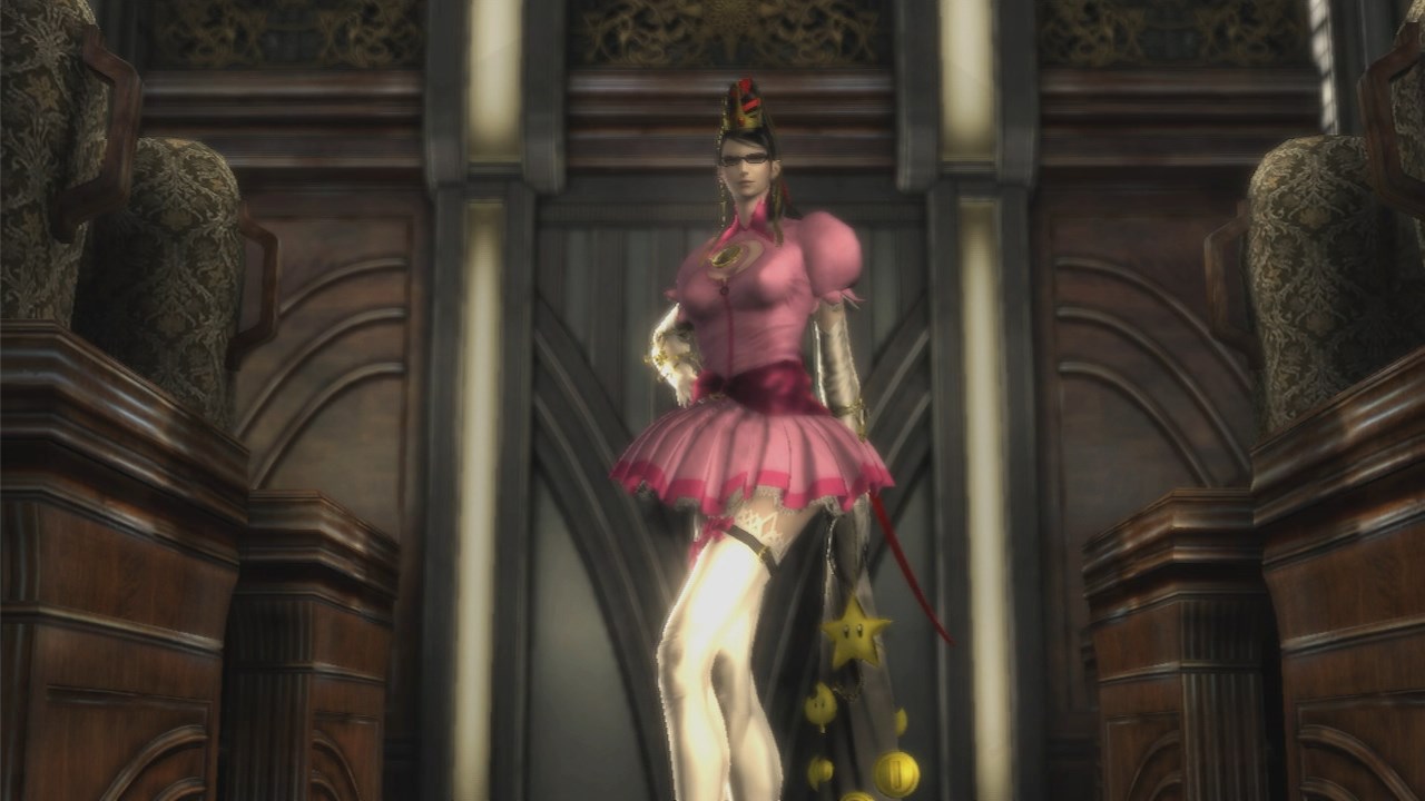 – The Peach costume features Bayonetta in a skimpy princess outfit