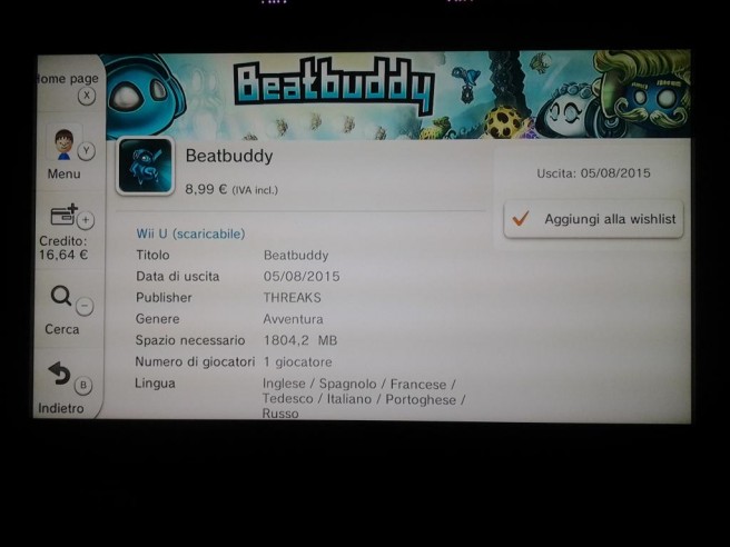 Beatbuddy is due out on the European Wii U eShop later this week, and we now have the game’s file size. You can see how large of a download it is through the image attached above. Beatbuddy seems like one of the larger eShop titles!