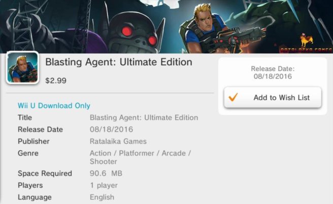 Next week, Blasting Agent: Ultimate Edition is heading to the European eShop. A listing on the store only has a release date of August 18 for the 3DS version, though we’re certain it will arrive for Wii U on the same day. Pricing is set at €2.99.