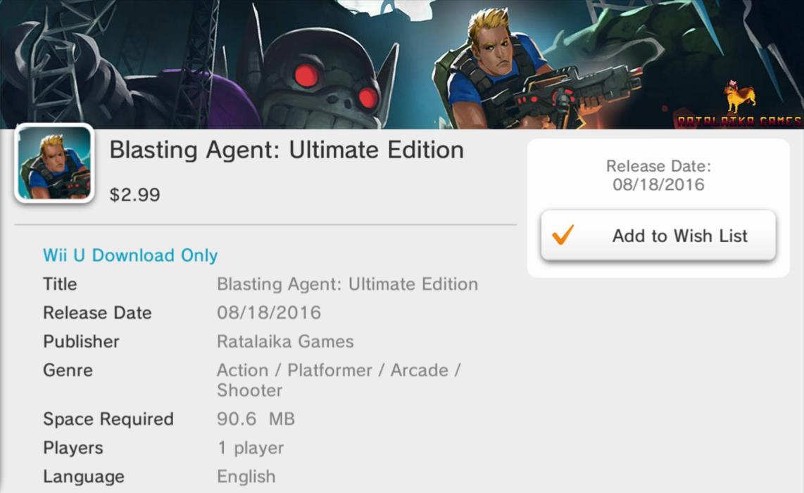 Ratalaika Games has pushed out a new update for Blasting Agent: Ultimate Edition. It should be out now on both Wii U and 3DS in North America, with Europe to follow on April 20.