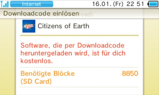 We brought you the file size for Citizens of Earth’s Wii U version earlier today, and now we have the same information for the 3DS equivalent. On Nintendo’s handheld, Citizens of Earth requires 8,850 blocks of space. That should convert to just over 1GB.