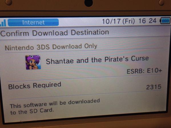 Shantae and the Pirate’s Curse is a little less than a week away from its North American launch on 3DS. To prepare fans, WayForward shared the game’s size over on Twitter. Shantae and the Pirate’s Curse will take up 2,315 blocks of space.