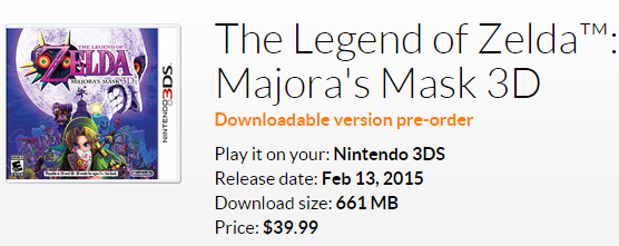 The Legend of Zelda: Majora’s Mask 3D is a 661MB download, Nintendo’s website confirms. For those wondering, that translates to roughly 5288 blocks.