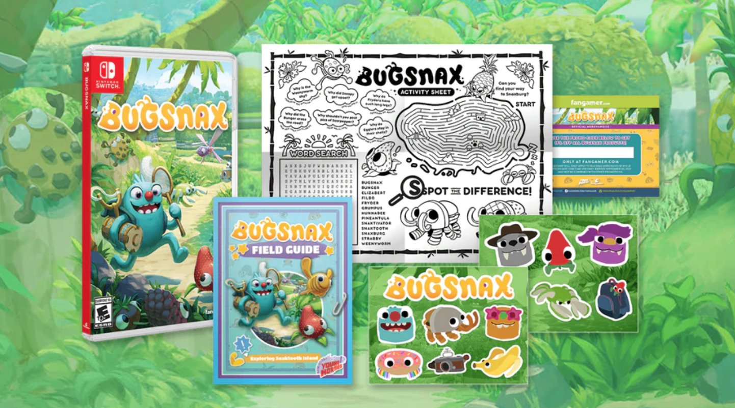 Each copy of Bugsnack for Switch will contain a copy of the game, activity sheet, sticker sheet, field guide, and discount on Fangamer merchandise.