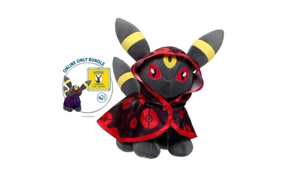 Gen 2 Pokemon fans will be happy to hear that Umbreon is now getting the Build-A-Bear treatment. By ordering the online bundle, you’ll receive the plush with 5-in-1-sound, sleeper, and cape accessories.