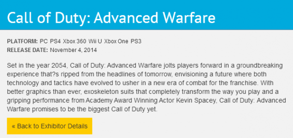 Call of Duty: Advanced Warfare has an E3 listing for Wii U